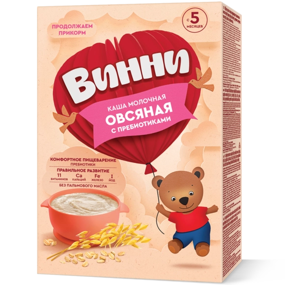 Suli uni, butun quruq sut, shakar, prebiotiklar (inulin),mineral moddalar (kaltsiy karbonat, temir pirofosfat, kaliy yodid), vitaminlar (L-askorbin kislotasi, nikotinamid, D-alfa- asetat, kaltsiy D-pantotenat, riboflavin, piridoksin gidroxloridi, tiamin mononitrat, retinol asetat, foliy kislotasi, D-biotin, sianokobalamin).