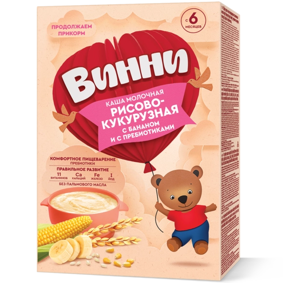 Guruch oson hazm bo'ladigan uglevodlar miqdori bo'yicha donli ekinlar orasida birinchi o'rinda turadi. Makkajo'xori yormalari B, E, A, PP vitaminlariga boy. Banan va prebiotikli sutli guruch va makkajo'xori bo’tqasi 6 oydan oshgan chaqaloqning menyusini kengaytiradi va unga yangi lazzat kombinatsiyalarini kiritadi.