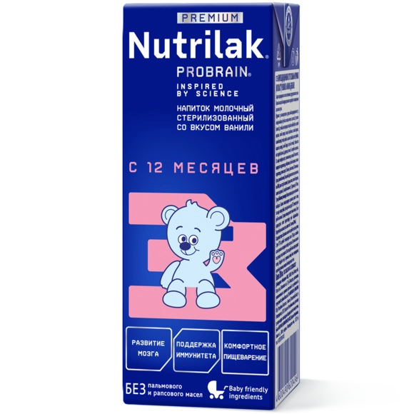 Bir yoshdan oshgan bolalar uchun qo'shimcha muvozanatlashtirilgan ovqatlantirish uchun vanil ta’mli tayyor sutli ichimlik