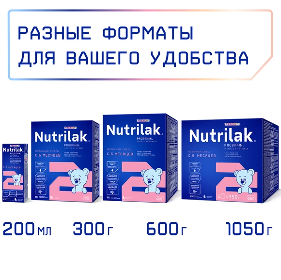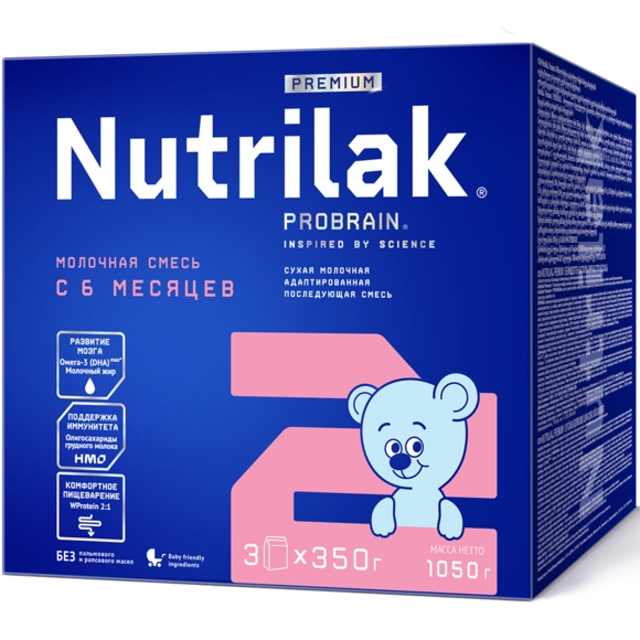 Nutrilak® Premium 2 kelgusi quruq moslashtirilgan sutli aralashmasi 6 oylik bolalarni aralash va sun`iy oziqlantirish uchun mo’ljallangan. Sog'lom o'sish, chaqaloqning to'liq intellektual rivojlanishi, immunitet tizimini qo'llab-quvvatlash va qulay hazm qilish uchun maqbul muvozanatlashtirilgan tarkibga ega.