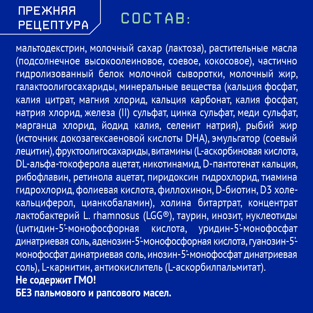 Комплекс пребиотиков-олигосахаридов GOS/FOS способствует регулярному мягкому стулу и нормализации микрофлоры.