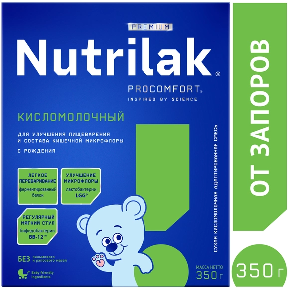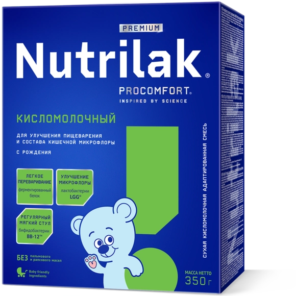 Nutrilak® Premium КИСЛОМОЛОЧНЫЙ bolalarni hayotining birinchi kunlaridan boshlab ovqat hazm qilish tizimining funksional buzilishlarining oldini olish va ichak mikroflorasini normallashtirish uchun bolalarni aralash va sun'iy oziqlantirish uchun mo'ljallangan.
