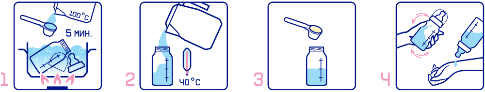 - Вымойте руки и простерилизуйте бутылочку, соску и крышку. Обязательно используйте прилагаемую мерную ложку. Перед использованием обработайте ее кипящей водой и высушите.