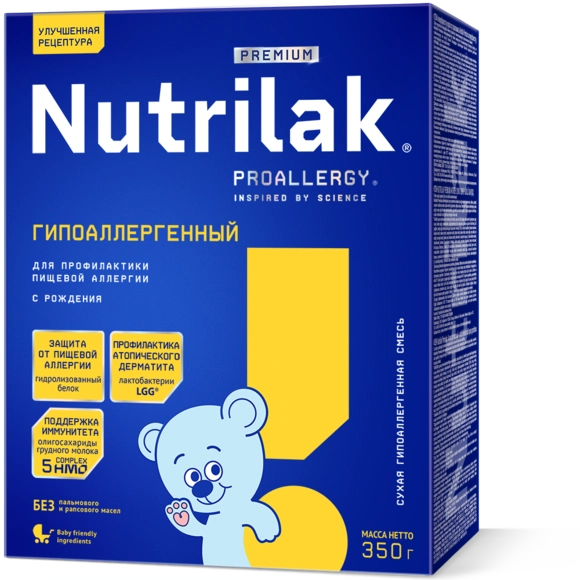 Qisman gidrolizlangan zardob oqsillariga asoslangan gipoallergen aralashmatug'ilishdan boshlab bolalarda oziq-ovqat allergiyasining oldini olish uchunning parhezli profilaktik ovqatlantirish uchun mo'ljallangan.
