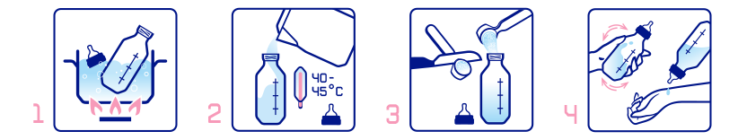 - Tayyorlangan butilkachaga 40-45°C haroratgacha sovutilgan qaynagan suvdan kerakli miqdorda quying.